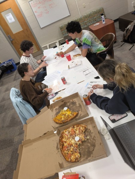 Jillian's RAs met for pizza and moral dilemma brainstorming!